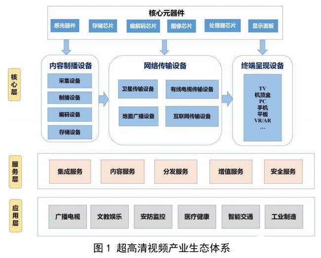 指南指出,超高清视频是具有4K(3840×2160像素)或8K(7680×4320像素)分辨率,符合高帧率、高位深、广色域、高动态范围等技术要求的新一代视频,具有更精细的图像细节、更强的信息承载能力和更广泛的应用范围,为消费升级、行业创新、社会治理提供了新工具、新要素、新场景,有力推动经济社会各领域的深刻变革。其技术演进不仅催生了芯片、内容制播、显示、传输等产业各环节的升级换代,还驱动了广播电视、安防监控、教育医疗、工业制造等行业以视频为核心的服务转型。超高清视频产业具有产业链长、涉及范围广、跨领域综合性强等特性,正在形成全新复杂的产业生态体系。