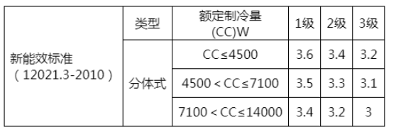 理想状态下,1匹的输出功率大约在2400瓦左右,空调的能效比=空调输出功率/空调输入功率,所以根据公式我们可以得知,在制冷效果相同的情况下,能效比越高耗电量越低。如图1所示为新能耗国标对于空调设定的三级能效标准。