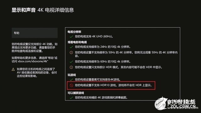 上面是一位吧友晒的图,本来买了一台4K电视,想开开心心体验Xbox游戏带来的HDR画面强化,结果却发现,电视根本就不支持!所以说,并不是你在电商搜了一台声称搭载HDR技术的电视,就可以“畅快”地体验HDR优化了。
