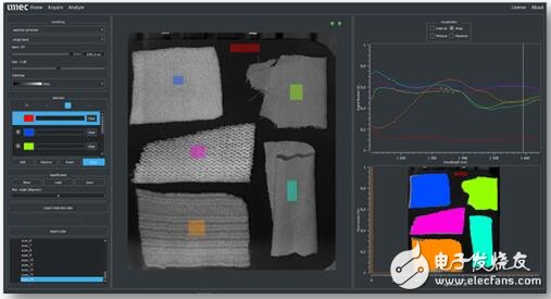 图为在SWIR波段使用Imec的1.1~1.7 μm波段内LS 100+光谱带的高光谱成像,可对各种不同的纺织品进行分类