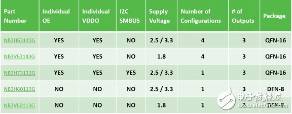 下表中列出了OmniClock系列所有的器件,并重点显示了每个器件的不同特点: