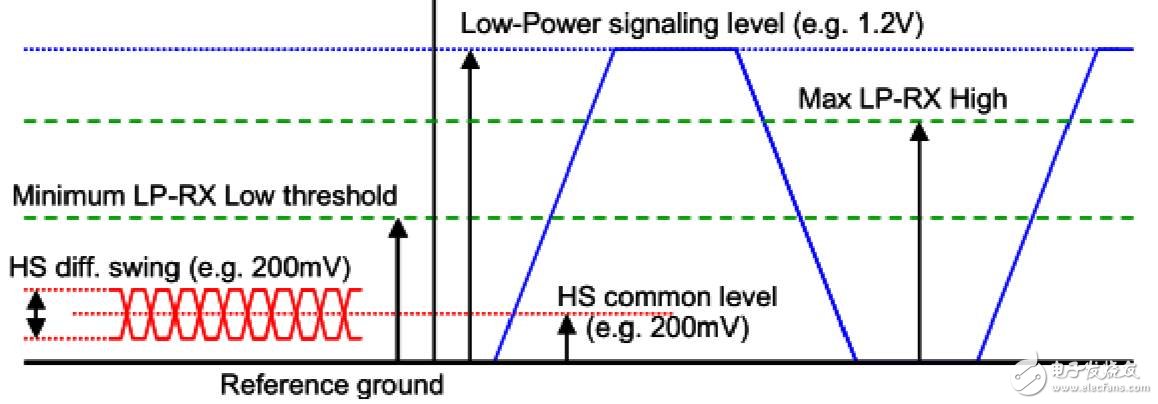 2、HS 状态下,通道状态是差分数据0或者1,当 Dp(300mv)比Dn(100mv)高时定义为 1,当Dn(300mv)比 Dp(100mv)高时定义为 0,此时典型的线上差分为 200mv。在 LP 状态下,通道状态不再是差分信号,而是相互独立的信号,根据Dp和Dn的电平状 态分为 LP11、LP00、LP10、LP01,此时将1.2V定义为1,将0v定义为 0。