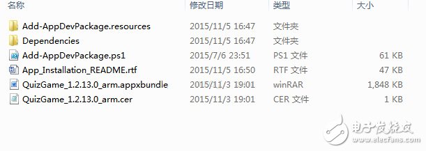 这里我们可以看到有多个文件,其中关键的文件就是dependecies文件夹、QuizGame_1.2.13.0_arm.appxbundle文件和QuizGame_1.2.13.0_arm.cer,其中dependecies文件中主要是包含了平台相关的支持,这里主要是使用到了ARM相关的文件,其中打开Dependecies目录下的ARM文件可以看到两个平台相关文件,这里在后续将应用安装到410c上需要将这两个文件都选择。