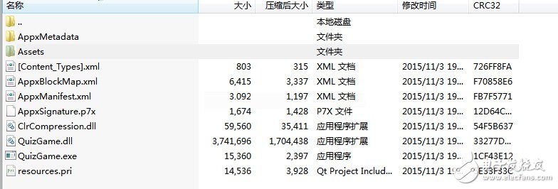 这里我们可以看到一个QuizGame_1.2.13.0_ARM.appx文件,这个文件其实也是一个.rar压缩文件,双击这个文件,可以看到这个文件中的内容,如下图4所示。