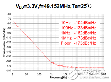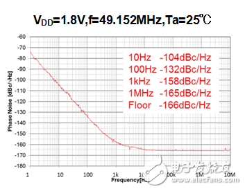 -162dBc/Hz @1kHz offset (fOSC=49.152MHz,VDD=3.3V)