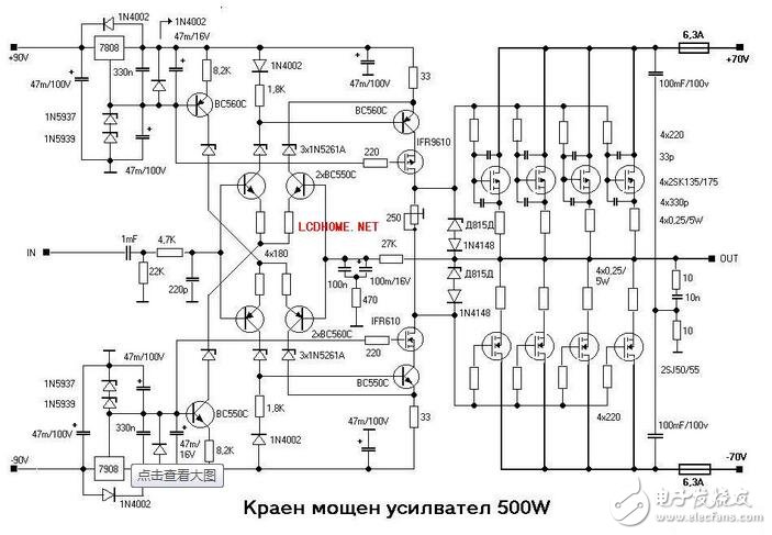 场效应管多管并联输出,500W。