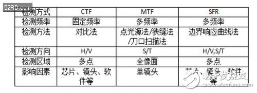 我们也可以通过检测频率、方法等方面简单区分CTF/MTF/SFR的差别: