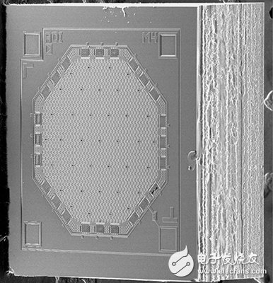 硅制造是在严格控制的环境中,利用一系列沉积和蚀刻工艺,产生金属和多晶硅的形状集合以形成MEMS麦克风。生产 MEMS麦克风涉及到的几何结构是微米(μm)级。声波所经过的背板中的孔直径可以小于10 μm,薄膜厚度可以是1 μm左右。薄膜与背板之间的间隙仅有数微米。图2所示为典型MEMS麦克风传感器元件的SEM图像,从顶部(薄膜)观看。图3所示为该麦克风元件中部的截面图。在该设计中,声波通过元件底部的空腔进入麦克风,并穿过背板孔以激励薄膜。