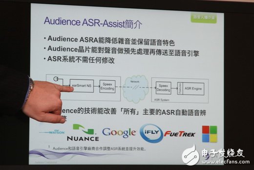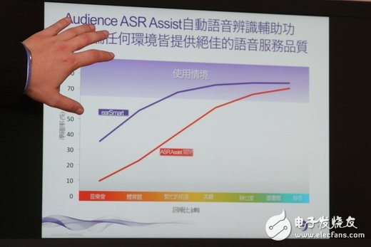Audience本身是一家以打造DSP音讯芯片解决方案的厂商,主要技术着重于透过听觉神经科学技术来模仿人耳所听到环境声音,同时可针对环境噪音滤除降噪,并且提升自然语音部分的呈现,例如将视讯会议时的背景环境声音予以减少,进而让人声部分变得干净、容易识别。而另外的应用则是套用在智能型手机语音指令、查找等应用,不用刻意提高音量才较有办法成功被装置识别。