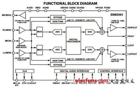 图1 SSM2603功能方框图