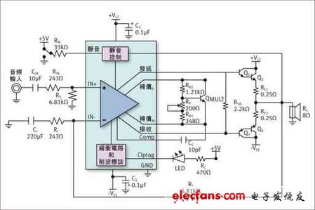 本文以美国国家半导体的音讯驱动器LME49810为例进行说明,该组件可提供200V的峰峰值输出电压摆幅,并可驱动不同类型的输出级,适合高阶消费和专业级音讯应用,包括主动录音室监视器、超重低音扬声器、音讯/视讯接收器、商用扩音系统、非原厂音响、专业级混音器,分布式音讯和吉他放大器等。此外,也适用于各类高电压及低失真要求的产业用音讯系统。可为音讯系统提供更精简的设计,协助设计人员更容易的开发出高性能音讯系统,实现更高的稳定性和一致性,大幅减少系统研发和生产时的分离式组件匹配及调节工作。
