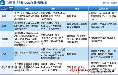 由于智慧电视与行动装置的晶片发展轨迹愈来愈相近,因而也吸引应用处理器商前来抢分杯羹。
