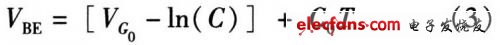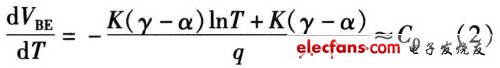如果忽略由温度变化引起lnT项变化对式(2)的影响,dVBE/dT可近似等于常数C0。常温下C0约为-2 mV/K。为了简化计算,则PN结关于温度的变化方程可近似线性为