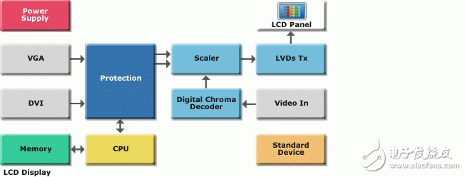 LCD显示器针对计算机和A/V市场。 一般来说,他们接收来自于VGA、DVI和复合视频源的输入信号。
