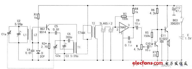 由于这种电路的工作电压低,频带宽而且增益高,于是决定将其改制成一台超外差收音机。