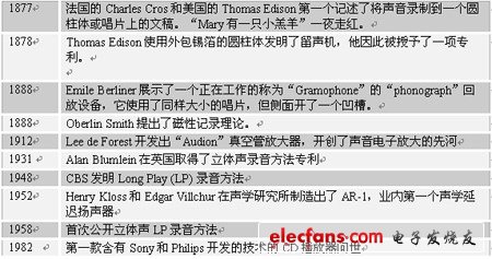 尽管一路上不时有新的技术出现,但只有1982年Philips和Sony推出的CD(紧凑型光盘)才促成了数字音频革命的真正开始。不过,尽管数字音频唱片和制造技术在传统唱片行业里被广泛使用,但回放设备仍然是模拟的。
