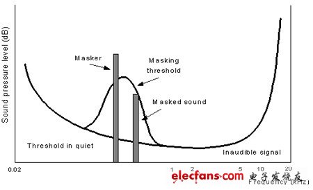 它们使用了三大关键技术。当要剔除低于最小听觉阈值的声音时,使用频率屏蔽技术。当一个大幅度信号非常接近另一个较低幅度的信号时,使用幅度屏蔽技术。从而小信号被大信号屏蔽,因此小信号将不被编码。最后,当不同音调在时间上非常接近时,使用时间屏蔽技术。从而可屏蔽掉在一个较柔和声音前或后的高音,并把它丢弃掉。