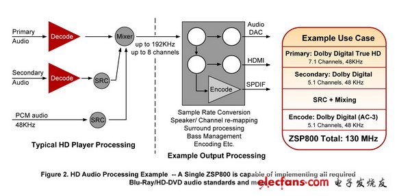 在过去的几年中,为推动高清晰度多媒体设备已经很 清楚,这一类已经开始在HDTV领域的成功主导,平板显示器大幅降价的带动下,但其他几个产品现在开始使在市场上的牵引力。 下一步新一代的DVD播放器,蓝光-射线和HD - DVD的,构成了快速增长的一部分这个空间和根据的圣诞老人圣克拉拉咨询集团,将代表在2010年一个$ 4乙市场, 这些设备现有的DVD播放机相比,也存在巨大的设计 挑战,例如,音频性能要求增加了好几倍,以支持新的高品质的音频标准,以及复杂的用例,包括大量的不同的音频技术。为了满足这些要求,完全集成的VZ.AudioHD平台包括各式各样的预先优化的高端音频软件模块,高性能ZSP800处理器,系统软件框架 。