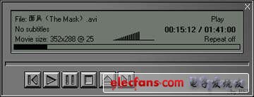 miniplayer称得上是目前最小巧的一款mpeg-4播放器,其最新版0.0.6只有119kb,压缩后只有37kb,图5就是miniplayer 0.0.6的用户界面。