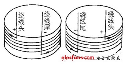 笔者在维修扬声器和音箱时,经常见到国内外的场声器生产厂家的标识不一致。下面笔者介绍四种判别扬声器极性的方法。一是用1.5V电池触及扬声器的”+、-”端,低频扬声器纸盆上下推动大些,高频扬声器的纸盆或振膜推动小一些。电池“+”极接扬声器”+”端,纸盆或振膜向上推动时,电池“+”极触及的一端为扬声器的”+”极。二是用指针式万用表触及扬声器的”+、-”极,纸盆向上推动,红笔接的一端为扬声器的“-“极,黑表笔接的一端为扬声器的”+”极。三是在场声器的修理组装中,可以从音圈的绕线方向来判断其极性,见图。顺时针方向绕,头为“+”极,尾为“-”极。逆时针方向绕,头为“-”极,尾为”+”极。四是用指针式万用表的直流50uA档表置于扬声器的”+、-”极,按压扬声器的纸盆,万用表指针顺时针方向摆动时,红表笔接的一端为“-”极,黑表笔接的一端为“+”极。万用表指针往逆时针方向摆动时,红表笔接的一端为”+”极,黑表笔接的一端为“-”极。