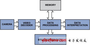 视频本身承载有大量数据,这些数据使得信号处理和数据存储任务变得相当复杂。通过丢弃无用的信息、只传递图片的重要部分可以简化视频检查系统,节省存储器和运算周期。图1给出了一个典型系统的组成单元。
