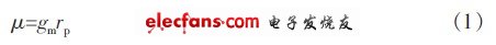 输入级采用一只电子管三极管构成的共阴极放大电路,其电路原理图如图1所示。图中电阻RL1,Rk1和Rg1分别同电子管的阳极、阴极和栅极相连接,使电子管建立稳定的工作点,同时具有合适的增益和适当的局部负反馈。V1可选择常用的电子三极管,如单三极管ECC92,或者是双三极管ECC82,12AU7,5814等型号中的一只电子管三极管工作原理与晶体管中的双极性三极管不同,但和场效应管类似,属于电压型放大器件,其主要参数为跨导gm,内阻rp和放大系数μ,且三者之间满足: