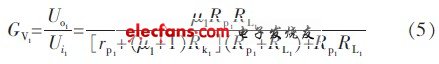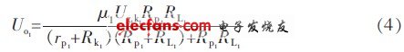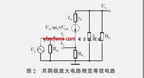 该电路的微变等效电路如图2所示,这里将电子管看成是受控电压源。图中,输入电压可表示为: