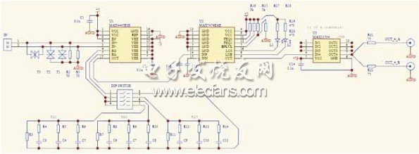 在本方案中,我们采用MAX4445配合外部阻容均衡网络固定补偿特定的传输距离,并结合MAX7474自动均衡的特点来补偿网线质量、安装距离和阻容器件参数分散性等带来的差异,很好地解决了1200米视频信号的自适应传输。