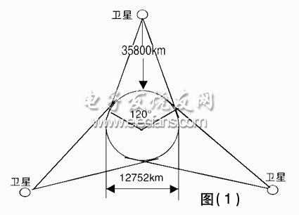 卫星从用途上可以分为:资源探测卫星,气象卫星,军事卫星,通信卫星,直播卫星等。从理论上讲,如果在地球赤道上空相对于地球静止的卫星轨道上放置三颗间隔各120度的卫星,就可以实现全球通信或全球广播。如图(1):