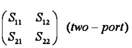 S参数描述N端口每一个端口网络反应的的电压信号。第一个数字的下标指的是应对口,而第二个数字指的是事件口。因此S21指信号端1在口2造成的反应。S参数来自行和列数量相等的矩阵口。沿S矩阵对角线的参数被称为反射系数,对角S参数被称为透射系数,因为他们只发生在单一端口。S矩阵的二端口网络见下表: