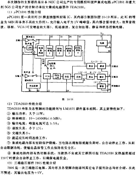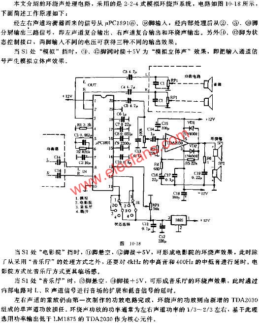 环绕声效果的产生是通过专门的环绕处理电路取得的。