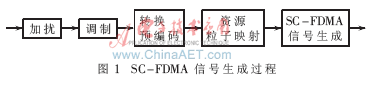 LTE所选择的上行传输方案是一个新变量:SC-FDMA(单载波-频分多址)相比于传统OFDMA其优点是既有单载波的低峰均功率比(PAPR),又有多载波的可靠性。在上行链路这点特别重要,较低的PAPR可在传输功效方面极大提高移动终端的性能,因此可延长电池使用寿命。代表LTE物理上行共享信道(PUSCH)的基带信号产生过程如图1所示[1]。