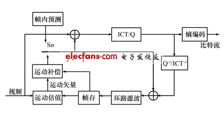AVS视频标准采用了与H.264类似的技术框架(如图1),包括变换、量化、熵编码、帧内预测、帧间预测、环路滤波等技术模块。