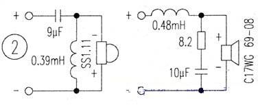 音箱采用6.5英寸书架箱,箱体选用木质成品。前障板最好为倾斜式,以利声音的扩散,这样可使声音余音绕梁,仿佛音箱不存在似的。高音喇叭选用惠威SS1.11丝绢膜球顶高音,中低音选用丹麦VIFA(威发)型号为C17WG-69-08海绵边涂胶纸盆喇叭。分频器自制,见图2。高音分频电容用法国索伦(音色甜美细腻)和德国ERO(音色靓丽)混合使用,中低音阻抗校正电容用普通薄膜电容即可。电感线圈为无氧铜线绕制的成品。由这两款扬声器和二分频器所组成的音箱,声音靓丽通透,细节丰富,聆听音乐堪称一流。