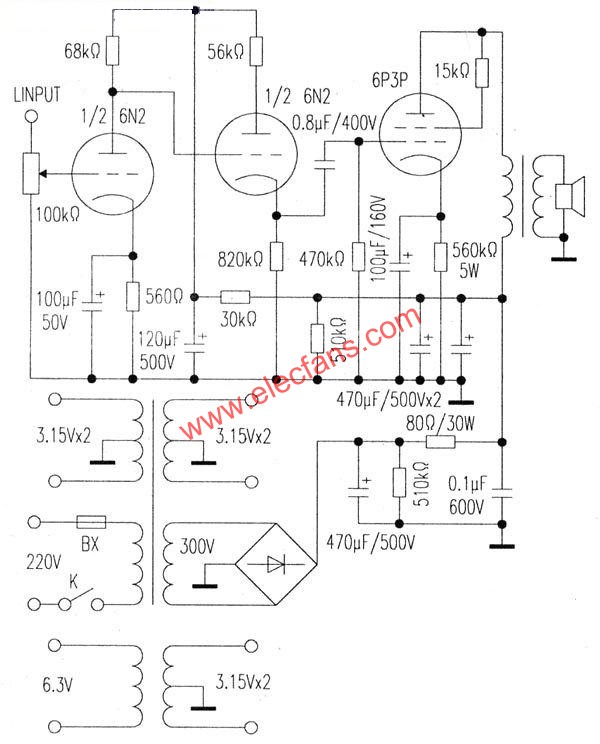 笔者制作了一款电子管后级功率放大器,所用胆管为价廉易购的6N2+6P3P,试听效果不错。将制作过程和步骤写出来与发烧友共享(电路见图)。