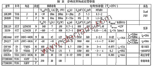 放大器输入级用管的JFET更是缺少符合要求的互补对(这是目前的制造水平所决定的)。附表列出了