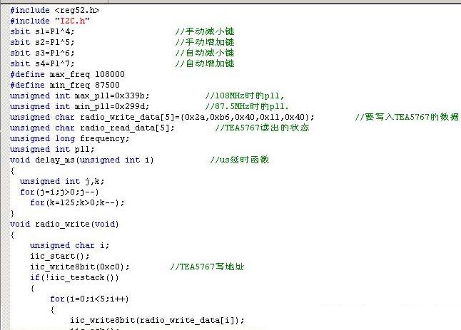 我们用5767收音模块通过搭焊与实验板相连,做成了整个收音实验,TDA5767和CL5767的指令完全兼容,可以直接代换。其实TEA5767的控制也不算很难,只要看懂了TEA5767.pdf(这个在我们的网站上可以下载到),然后用C51就可以控制它,实现FM收音功能。下面就来谈谈TEA5767的编程思路,希望对有兴趣弄这个芯片的朋友有些帮助。