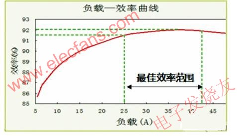 优化电源设计,通过减少元件数量,缩减PCB板面积,降低温度,提高系统可靠性。通过电源智能温控技术,自动关闭/开启整流模块,使电源时钟工作在效率最高的负载率区间(图5所示)。