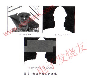 oreman"中的第50帧图像进行实验。原视频帧如图2(a)所示,图2(b)为此帧图像MPEG-4编码的形状信息,图2(c)为传输中由于出现错误,接收端得到的错误形状信息。