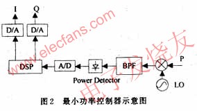 最小功率控制器,这种自适应性控制器是“最小功率”原理运用到前馈线性化技术中的典型代表。图2是最小功率控制器的框图。通过调整控制电压“I”和“Q”来最小化
