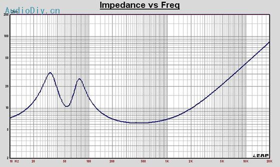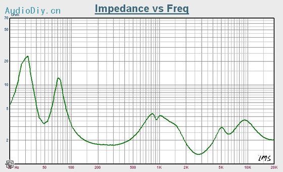 首先是HIVX的S系列中的某一款,价格还可以,但部份参数达不到要求,主要是振膜刚性不足。不容易得到较好较细致的声音还原,线性位移相对不够,这将影响在大动态下低频的重现,当然这里并不是说它不好,只是相对的。还有就是轴相和离轴响应上的问题此单元在中频的分隔振动产生的峰谷,以及此单元的振膜曲线同较小的防尘帽让它产生了较高的前室效应。在离轴上有一个很大的衰减谷,当然我们不可能要求厂家换上大防尘帽等。因为如此会增加振动质量,及降低刚性以及内腔造成的谐波失真,和磁路变化,反而在此单元基础上带来更多的不利。如果要用上此单元将要把分频点作低,我不想受这样的限制因此放弃了选择此款单元。