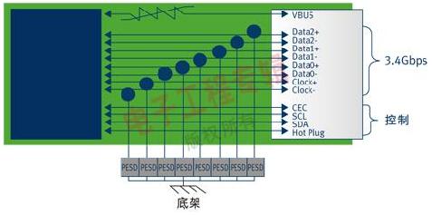图5 典型HDMI接口电路保护方案设计-ESD与过流保护