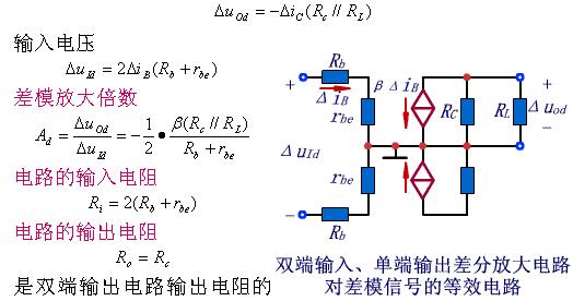 如右下图所示为差模信号的等效电路。在差模信号作用时,由于T1管与T2管中电流大小相等方向相反,所以发射极相当于接地。