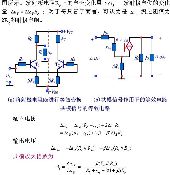 一半。如果输入差模信号极性不变,而输出信号取自T2管的集电极,则输出与输入同相。当输入共模信号时,由于两边电路的输入信号大小相等极性相同。与输出电压相关的T1管一边电路对共模信号的等效电路如下
