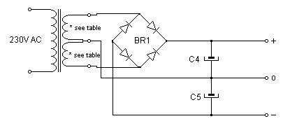 这是个简单的低成功率放大器。你可以有5种方法完成她,就像图表中所指示的(从20W到80W RMS ).