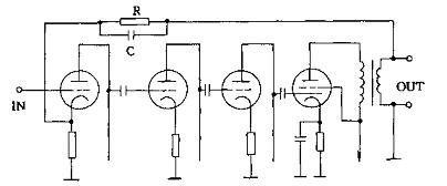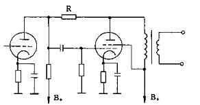 将后一级放大管屏极的信号,通过电阻R反馈到前一级电子管的屏极。因前级信号经栅极倒相后,前级与后级两管的屏极相位亦相反,这样即组成屏至屏极的负反馈网络。反馈电阻R的阻值—般取1—1.5MΩ。若R的阻值过小时,会降低输入阻抗,同时对放大器的低频响应造成影响。