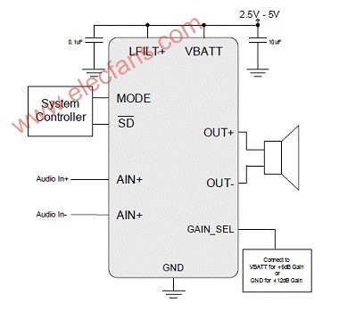Delivers 2.7 W/Ch into 4ohm at 10 % THD+N