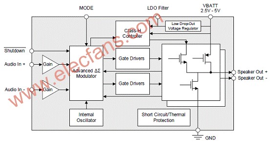 2.9 W Mono Class-D Audio Amplifier with Low Idle Current
