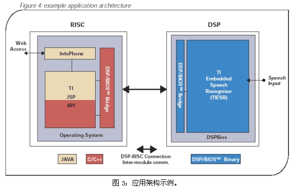 语音应用示例 InfoPhone 是基于这种嵌入式架构的语音应用的一个典型示例,它由TI开发,专门用于无线领域。InfoPhone是一个可实现语音功能的