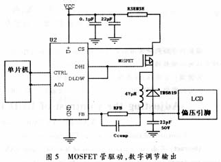 用MOSFET管驱动可以输出较大的电流与电压,转换效率也较高,其电路如图5所示。